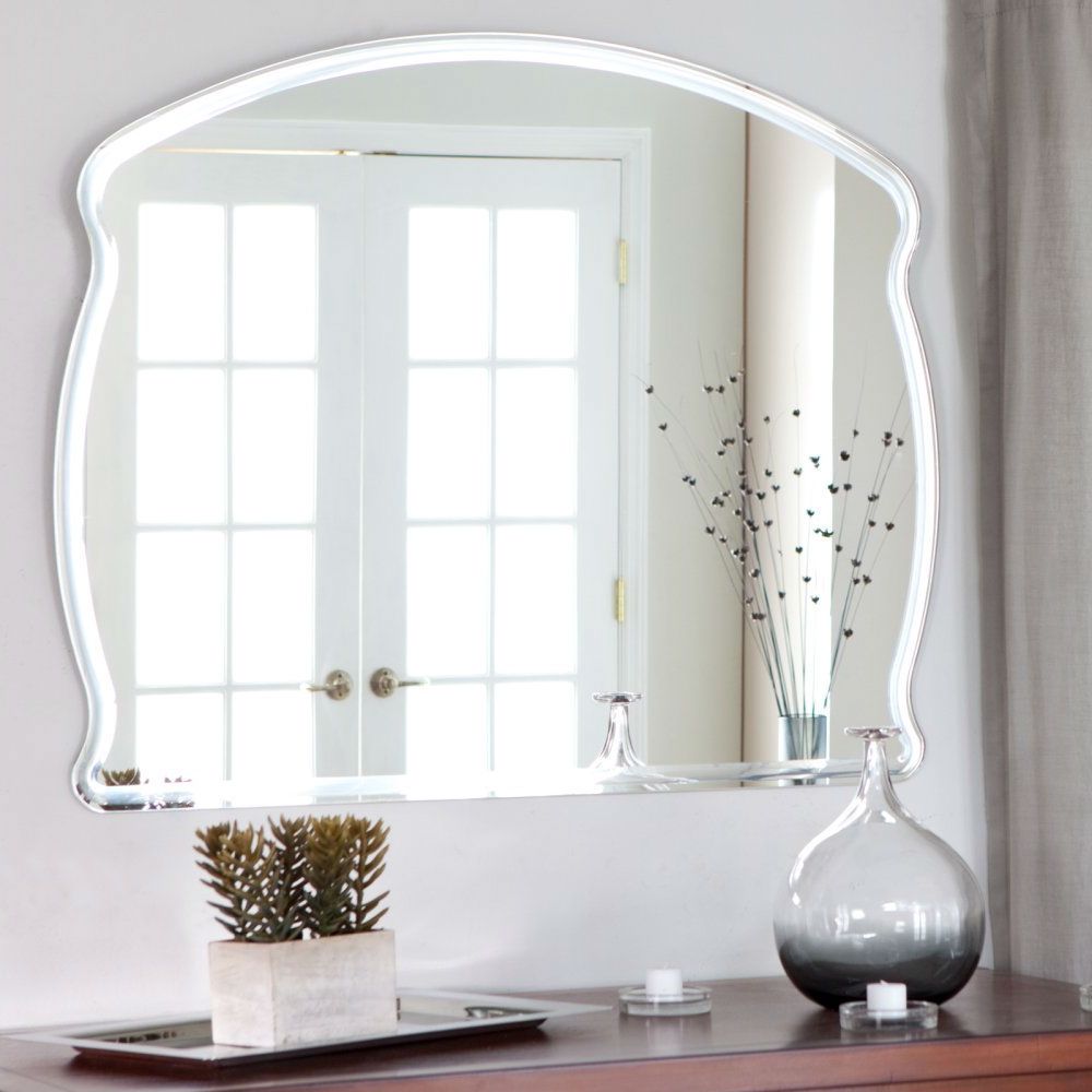 Rectangular Arch Top Wavy Modern Frameless Wall Mirror Attractive and sophisticated style Constructed of strong 3/16 glass Rectangular shape Arched top and wavy sides Polished border Includes mounting hardware