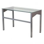 The versatile Rectangular Writing Table Office Desk with Clear Tempered Glass Surface is a sleek, attractive design thatÂ’s great for casual computer usage, working from home, or managing the household bills. The tempered glass top is incredibly durable and crystal clear so papers and electronics appear to be floating on air. The supportive frame is made of metal in a silver powder-coated finish with braces for added stability. Some assembly is required.