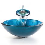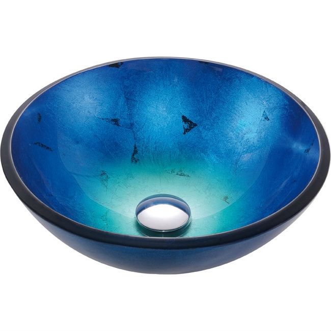 - Round Blue Tempered Glass Vessel Bathroom Sink