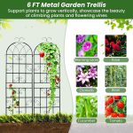 - Suitable for Various Climbing Plants: The 6 ft metal garden trellis is perfect for supporting plants grow vertically, making your favorite plants thrive and flourish. Whether for morning glories, Chinese roses, clematis, beans, cucumbers, tomatoes, or other climbing plants, it can be a perfect choice.