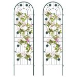 This Set of 2- Outdoor 6-ft Galvanized Steel Garden Trellis in Green Metal Finish is constructed of galvanized steel, ensuring unrivaled sturdiness and rust resistance to hold heavy plant for longer time. The trellis features 10.5″, 11″ long legs, allowing for effortless insertion into the ground, providing a stable foundation. With impressive heights of 71″, the metal trellis offers an expansive area for your climbing plants and vines to reach new heights. By providing an abundance of vertical space, your plants can thrive as they eagerly stretch towards the sun’s nourishing rays. Apart from being used as a plant support for climbing plants. The 2 pack trellis set can be combined with a garden fence, ensuring the protection and privacy of your cherished plants. Plus, you can connect 2 or more trellis in an A-shape frame for growing cucumbers or other climbing vegetables. Designed with enchanting birds, flowers and leaves, the tall garden fence will effortlessly add a touch of timeless elegance and retro charm to your garden, lawn, or yard. Moreover, you have the freedom to arrange more trellises to different layouts according to your unique requirements. Coming with complete components and a detailed instruction manual, the assembly process of the wire lattice grid panel is a breeze. Besides, the 2 pack fence trellises are designed with an effortlessly interlocked connector, allowing for quick setup.