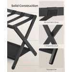 • Set of 2 – Sturdy Bamboo Luggage Rack in Black Wood Finish with Lower Storage Shelf
