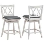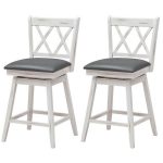- Set of 2 White Wood 24-in Counter Height Farmhouse Swivel Cushion Seat Barstools
