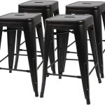- Set of 4 – 24-in. Indoor/Outdoor Backless Stacking Black Metal Barstools
