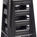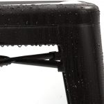 This Set of 4 – 24-in. Indoor/Outdoor Backless Stacking Black Metal Barstools for convenient storage & space saving use hand-holds make the stools easily to be picked up or moved each lightweight but sturdy stool weighs 11 lbs, while with 330 lbs weight capacity x-brace support under the seat provides additional stability & durability non-mar rubber feet prevent from sliding and scratching floors heavy duty metal construction each metal bar stools 30” tall, seat size 12 x 12”.