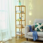 The Slim 4-Shelf Natural Bamboo Wooden Shelving Unit Storage Rack Bookcase features sturdy bamboo and refined craft, creating additional space for your home. Considerable design makes it a better choice to your bathroom, living room, kitchen, balcony or any other space to display and store items in style. It can be used as a storage rack for toiletries, towels, sundries, decorative things, knick knacks, shoes, books, plants, spice and small appliances. You can remove a layer to meet your special storage need. Easy to care and clean. The nice bamboo will well match with your furniture in your home.