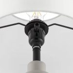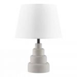 - Small Grey Desk Light Table Lamp with White Fabric Shade for Bedside Nightstand