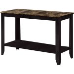 Sofa Table in Dark Brown Wood Finish with Faux Marble Top