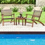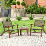• Solid Wood and Rattan 3-Piece Outdoor Patio Furniture Table Chairs Set