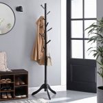 - Space Saving Solid Wood Modern Coat Rack in Black Finish