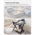 Make your guests feel at home with this Sturdy Bamboo Luggage Rack in Chestnut Brown Wood Finish with Lower Shelf. It elevates their suitcase to a comfortable height for packing and unpacking, saving you or your guests from bending down to the floor. The natural bamboo frame combined with robust nylon straps supports up to 110 lb on the top and 21 lb on the lower shelf; the espresso finish adds a personal touch to bedrooms, guest rooms, or hotels. With a 26.4”L x 18.5”W x 20.1”H size that’s wider than similar racks, this luggage rack for guest rooms can accommodate most suitcases; the folded size of 26.4”L x 3.2”W x 26.6”H can easily fit into a closet or corner when not in use. Follow the instructions to connect the 4 corners of the structure with the included Allen key and only one type of screw so you can easily set up this suitcase stand. No more getting lost in nuts and bolts! The lower storage shelf of this luggage rack keeps shoes or other items off the floor; the hook-and-loop fastener on it lets you roll up the fabric layer to keep it neat and clean when folded.