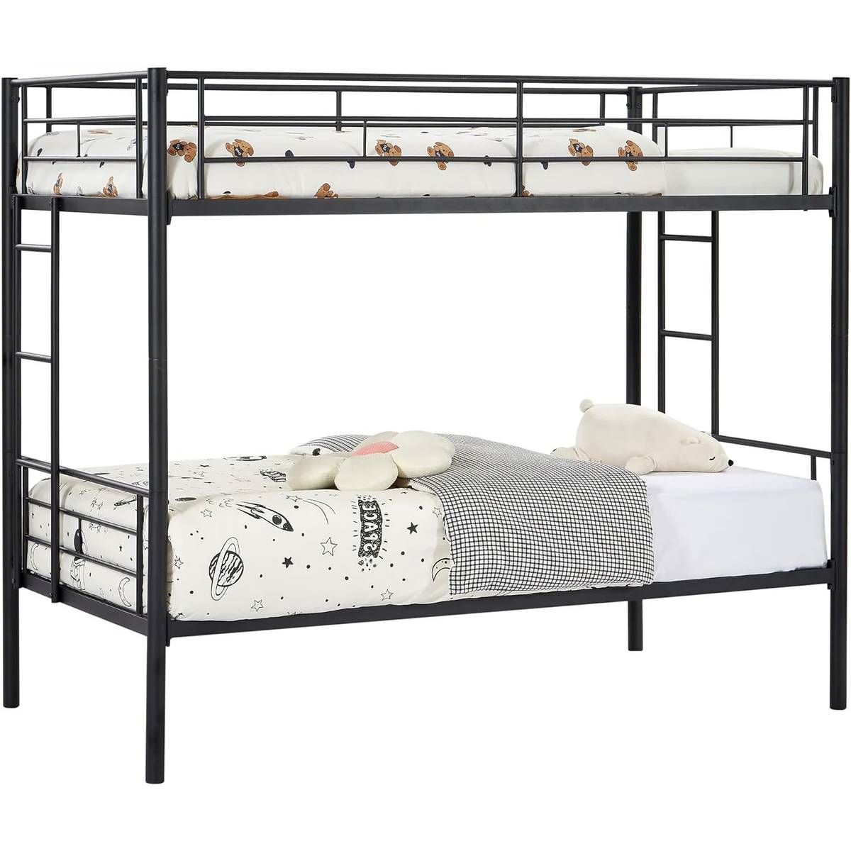 - Sturdy Black Metal Twin over Twin Bunk Bed Frame with Two Side Ladders