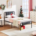 Modern-industrial design crafted by MDF wood with striking natural wood grain on the wood-paneled headboard and footboard. It is easily blended with modern, traditional, farmhouse, and rustic home decor. This Twin Black Wood Metal Platform Bed Frame with Rounded Headboard Footboard is a sleek finishing touch to your bedroom. This bed frame is built with reliable 9 metal support legs and 13 pcs of heavy-duty steel slats which provide strong support to your mattress. The powder-coated surface features scratch resistance for long term use. Sturdy steel slats support with foam padding inside prevent mattress sliding. No squeaky when you are rolling over at midnight. Plastic foot pad attached to the bottom of the bed frames for floor protection. 12.3 inches Underbed Storage Space brings you spacious storage space and easy cleaning. Sufficient storage space provides you valuable storage room for extra odds and ends. The assembly instructions were so clear and easy to follow, Every part is clearly labeled and numbered. you can install this bed by yourself in half an hour. Mattress not included.