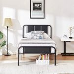 - Twin Black Wood Metal Platform Bed Frame with Rounded Headboard Footboard