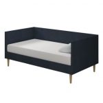 Twin Mid-Century Modern Dark Blue Linen Upholstered Daybed Frame Material: Solid + Manufactured Wood Mattress Included: No Trundle Bed Included: No Slats Included: Yes Assembly Required: Yes Upholstered Upholstery Material: 100% Linen