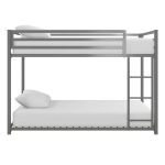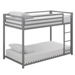- Twin over Twin size Modern Low Height Silver Grey Metal Bunk Bed