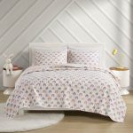 This Twin Size 2 Piece Pink Rainbows Reversible Cotton Quilt Set adds a bright, playful accent to any bedroom with its colorful two-tone pink/white stripe pattern on one side and a bold print on the reverse. It includes a quilt with a noticeable diamond weave along with two coordinating shams (one for the twin coverlet option). Each item is made from a breathable cotton fabric that arrives pre-shrunk and is good for all seasons. This set is non-pilling, so it stands up to frequent use and multiple trips through the washing machine.
