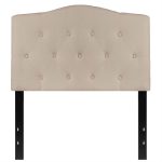 Twin size Beige Fabric Upholstered Button Tufted Headboard Contemporary style Panel headboard Beige fabric upholstery Button Tufted with Diamond Pattern stitching Black metal stands with adjustable bed rail slots