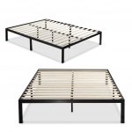 This Twin size Black Metal Platform Bed Frame with Wood Slats features wooden slats that provide strong support for your memory foam, latex, or spring mattress. This Platform Bed is 14 inches high with clearance under the frame for valuable under bed storage. Openings in two of the legs allow for attaching a headboard to this Platform bed. Headboard and Mattress not included. The Platform Bed provides stylish and strong support for your mattress.