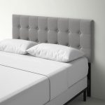This Twin size Contemporary Button-Tufted Headboard in Grey Upholstered Fabric decorates your bed with a hint of mid-century-inspired design. It’s built with a solid and engineered wood frame and has a rectangular panel silhouette for a simple aesthetic. The polyester upholstery is decorated with button tufting to give it a hint of vintage appeal. Its foam filling provides some extra cushion behind your head as you read before bed. This headboard’s height is adjustable, so you can adjust it to best fit your mattress height. You can install it right onto your bed frame with its pre-drilled holes and included hardware.