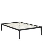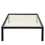 Twin Size Heavy Duty Metal Platform Bed Frame with Wooden Slats Mattress is embedded in steel frame to avoid sliding or wobbling No box spring needed with the solid steel frame 12.5 inches of clearance. No additional tools required