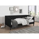 - Twin size Modern Black Fabric Upholstered Button-Tufted Daybed