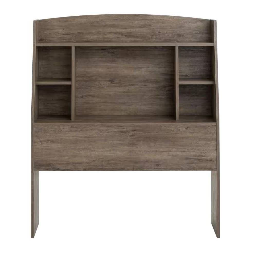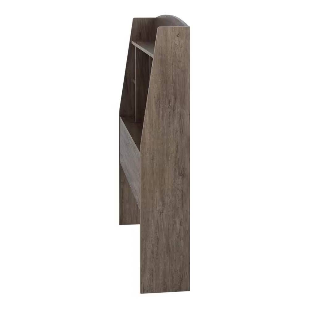 Twin size Modern Bookcase Headboard in Grey Brown Wood Finish