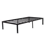 Twin size Modern Heavy Duty Black Metal Platform Bed Frame No box spring needed with the solid steel frame Steel structure & construction with ultimate strength and durability Unique steel slat and frame construction allow the mattress to perfectly sit and rest on frame To avoid sliding or wobbling