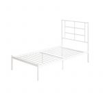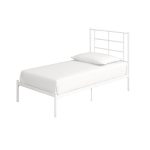 The Twin Size Modern White Metal Platform Bed with Geometric Headboard is the perfect combination of functional design and amazing style. This bed designed with a simple geometric headboard that makes a statement. The metal construction includes side rails, additional center legs, and secured slats. The bed has your back thanks to its 11-inch under-bed clearance that allows you to store those clothes and shoes that canÂ’t seem to fit anywhere else.