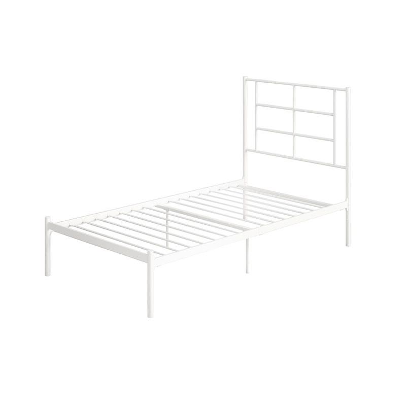 Twin Size Modern White Metal Platform Bed with Geometric Headboard