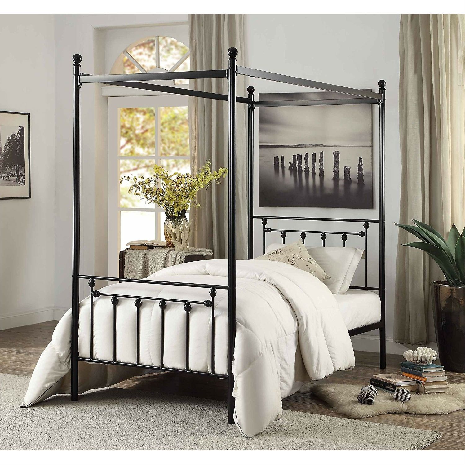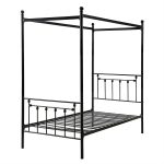 Twin size Sturdy Metal Canopy Bed Frame in Black Metal Finish