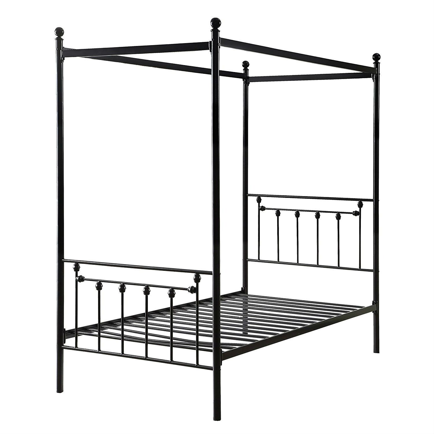 • Twin size Sturdy Metal Canopy Bed Frame in Black Metal Finish