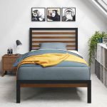 The Twin Student Dorm Black Metal Platform Bed Frame with Brown Wood Slat Headboard is beautifully designed to fit your industrial or modern aesthetic. Its slatted headboard and low-profile footboard are both made from beautifully finished sustainable bamboo, while the rest of the frame is constructed with sturdy steel. With its clean-lined silhouette, this modern bed enhances your primary suite, kid’s room, or guest room with style and function. Designed for use without a box spring, you can rest your mattress directly onto the metal slats for long lasting support. All parts, tools, and instructions are neatly packed into a single box that ships right to your door for quick and simple setup. With the Twin Student Dorm Black Metal Platform Bed Frame with Brown Wood Slat Headboard, meshing your style with a dependable and affordable piece of furniture can be easier than you think.