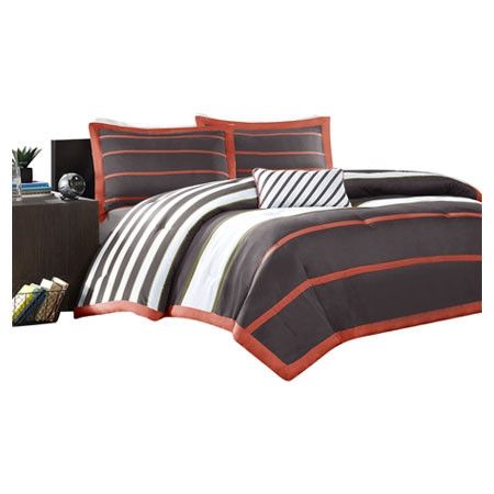 - Twin / Twin XL Comforter Set in Dark Gray Orange White Stripes