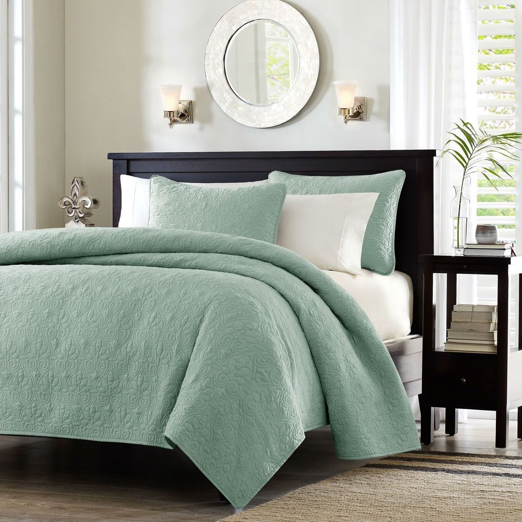 - Twin / Twin XL size Coverlet Quilt Set with Sham in Seafoam Blue Green Brushed Fabric