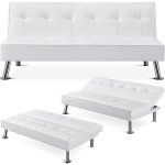 This White Faux Leather Click Clack Adjustable Futon Sleeper Sofa provides functional and aesthetic furniture for any limited space. Crafted from a plywood frame, faux leather covering, foam fill, and strong metal spring, this convertible sofa bed features a flexible folding contraption to lock the back at 2 tilt angles for reading and lounging or lay it down as a comfy platform bed. With the solid construction, it can easily hold up to 770lb. The tufted faux leather upholstery presents an understated yet luxurious touch.