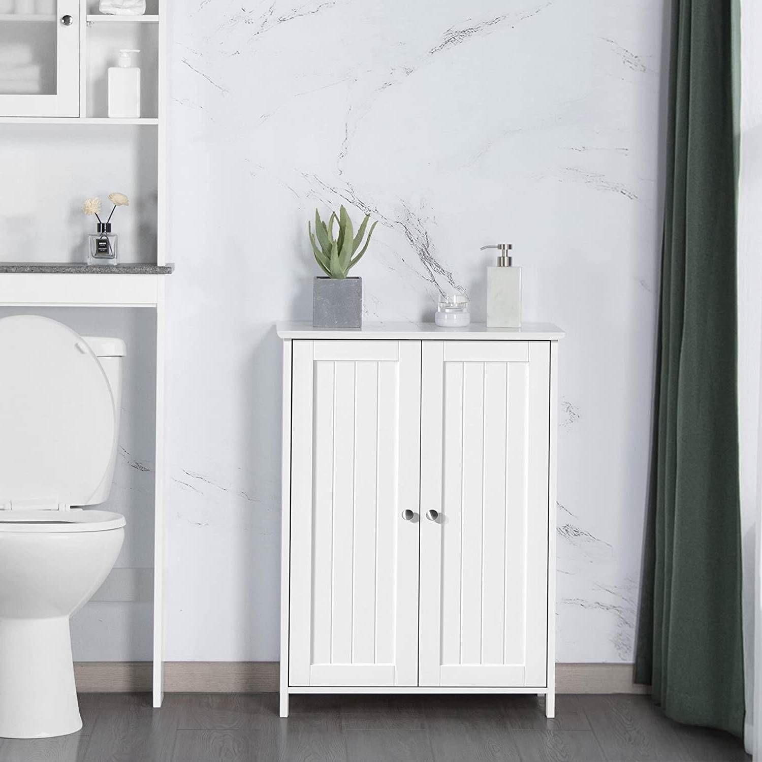 - White Wood 2-Door Freestanding Bathroom Floor Cabinet Kitchen Storage Cupboard